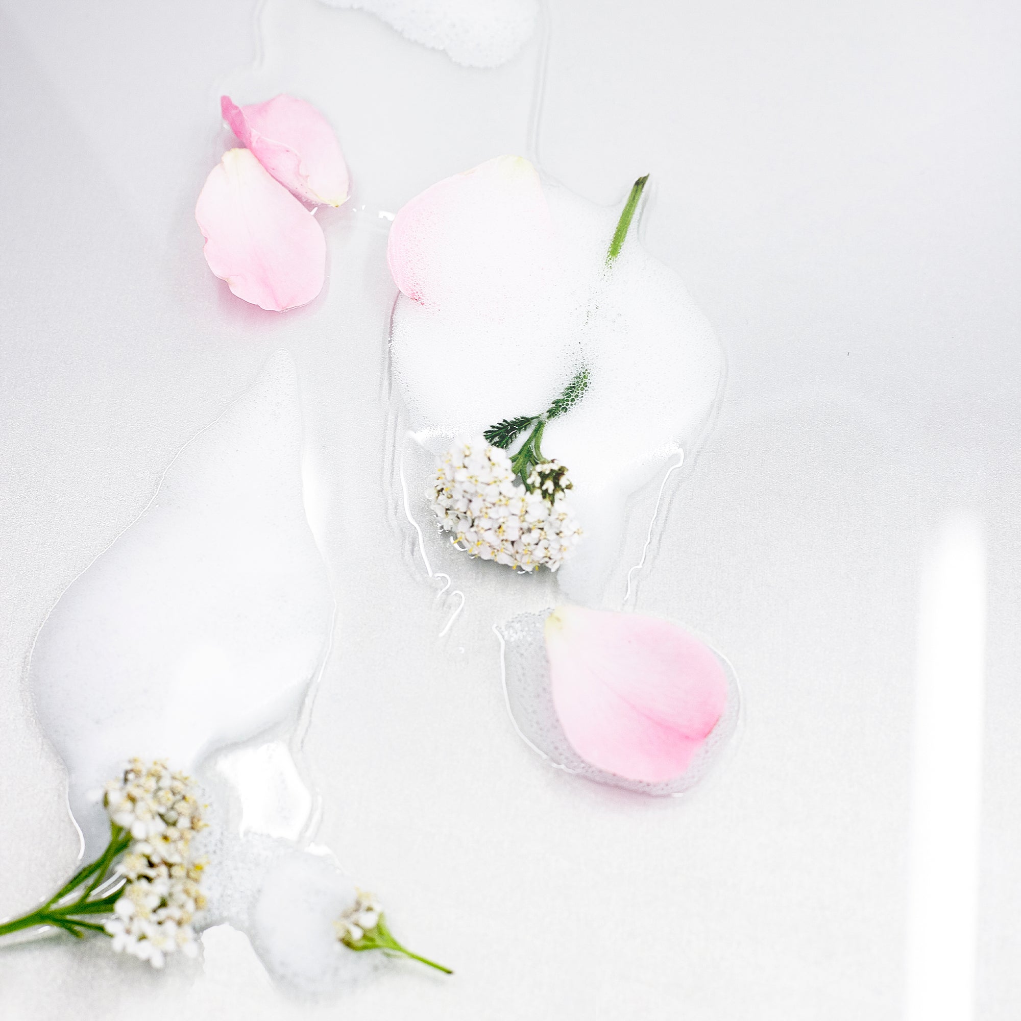 Aqua/Eau - Cocoamphoacétate de sodium - Eau florale de Rosa Damascena (Rose)* - Alcool, acide lactique, glycérine** - Cocoate de surcose - Alcool benzylique - Extrait de fleur d'Achillea Millefolium (achillée millefeuille)* - Extrait de fleur de Calendula Officinalis (Calendula)* - Camomille Extrait de fleur de Recutita (camomille)* - Benzoate de sodium - Sorbate de potassium - Arôme/Parfum.