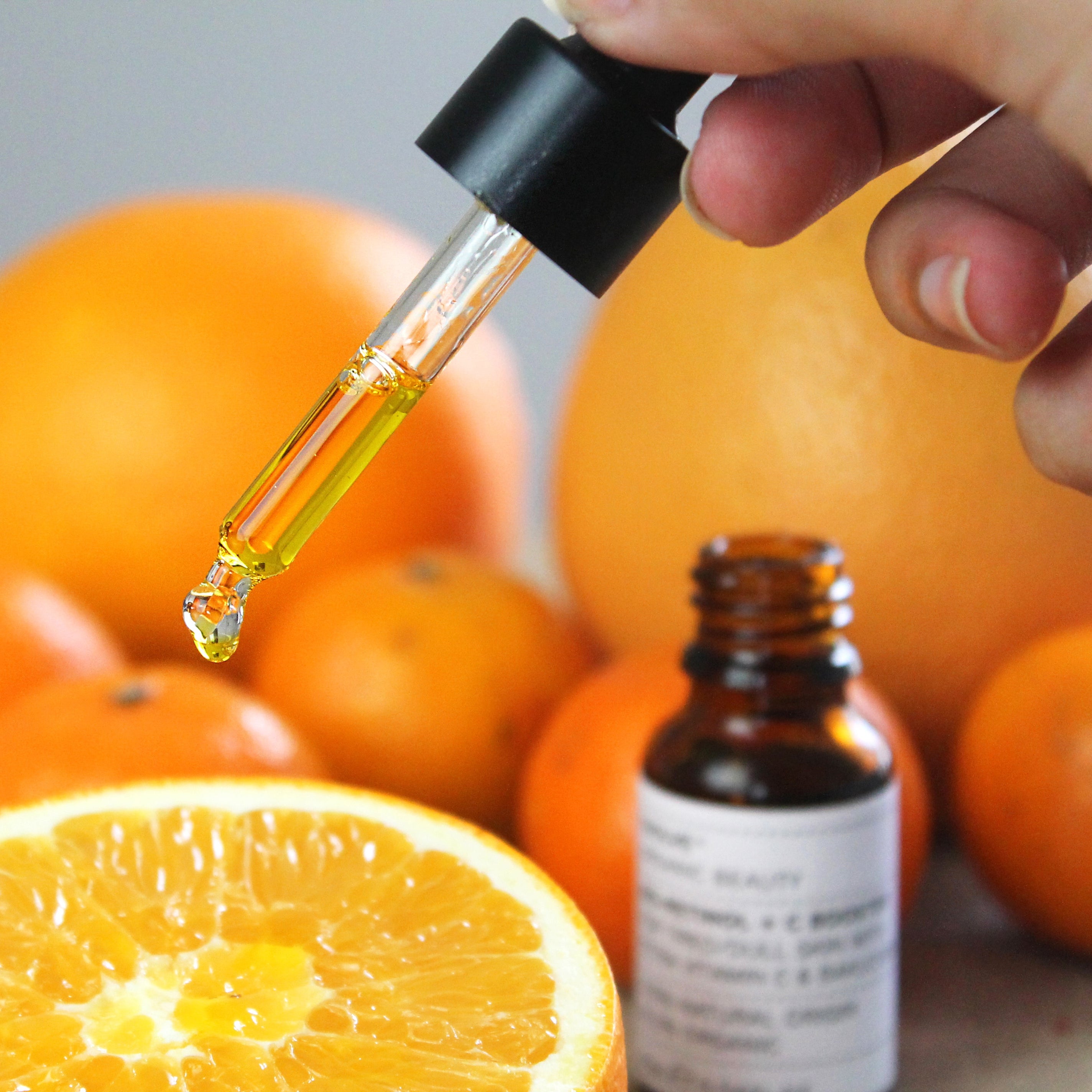 Vitamine C en Bio-Retinol worden samengebracht om je huid een boost te geven.
