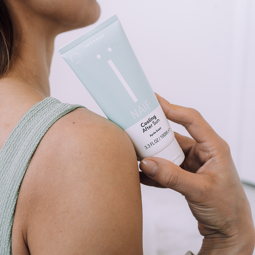 Heerlijk zo’n dag vol zon. Naast dat je natuurlijk goed gesmeerd hebt met onze Naïf zonnebrandcrème of lotion, is het minstens zo belangrijk om de huid nazorg te geven met een kalmerende aftersun. Naïf Verkoelende After Sun Gel kalmeert en verkoelt de huid na een warme dag in de zon. Waar natuurlijke oliën je huid voeden en beschermen, kiezen we voor een aftersun voor natuurlijke ingrediënten als aloë vera en plantaardige glycerine. Deze geleiden de warmte van je huid naar buiten en hydrateren tegelijktijd. Hierdoor blijft zelfs de meest gevoelige huid zacht en soepel. Precies wat de huid nodig heeft na blootstelling aan UV stralen. Trekt snel in en zonder te plakken! Alle producten van Naïf zijn gemaakt met natuurlijke ingrediënten, vegan en dermatologisch getest. Ook bevatten ze geen microplastics.